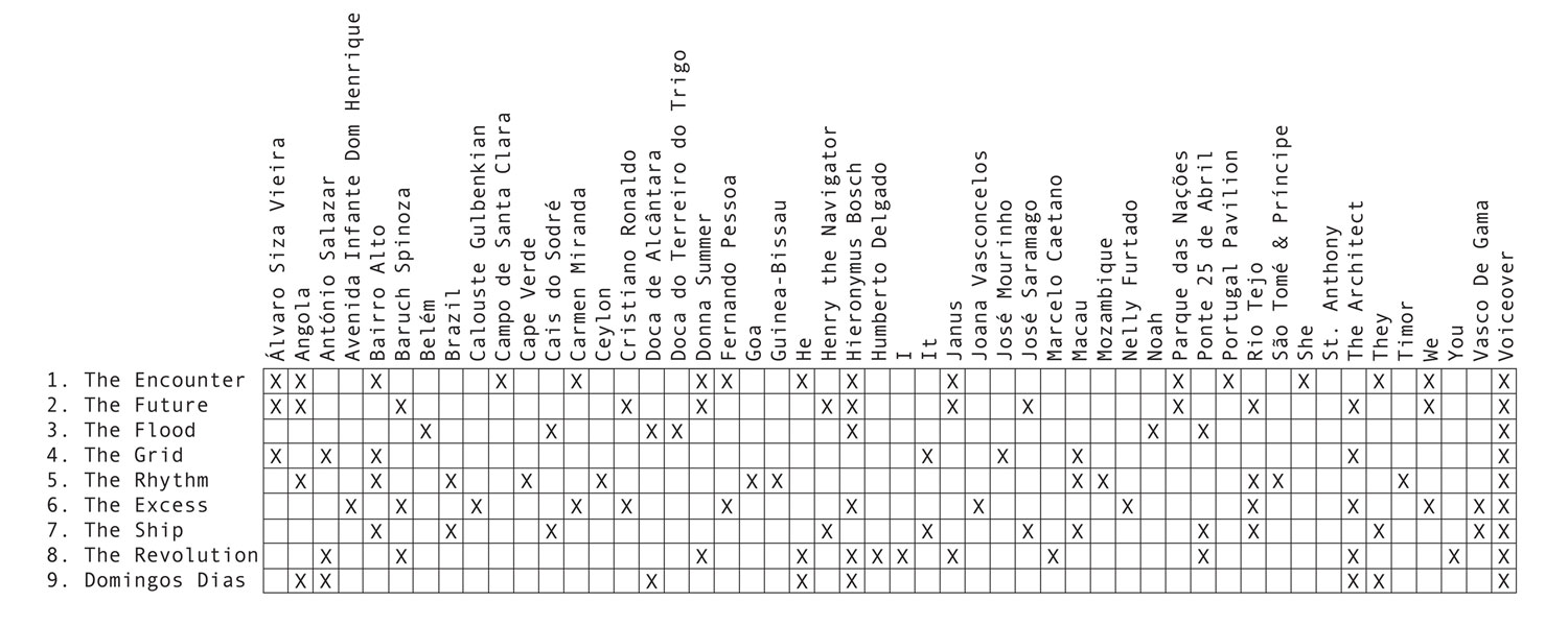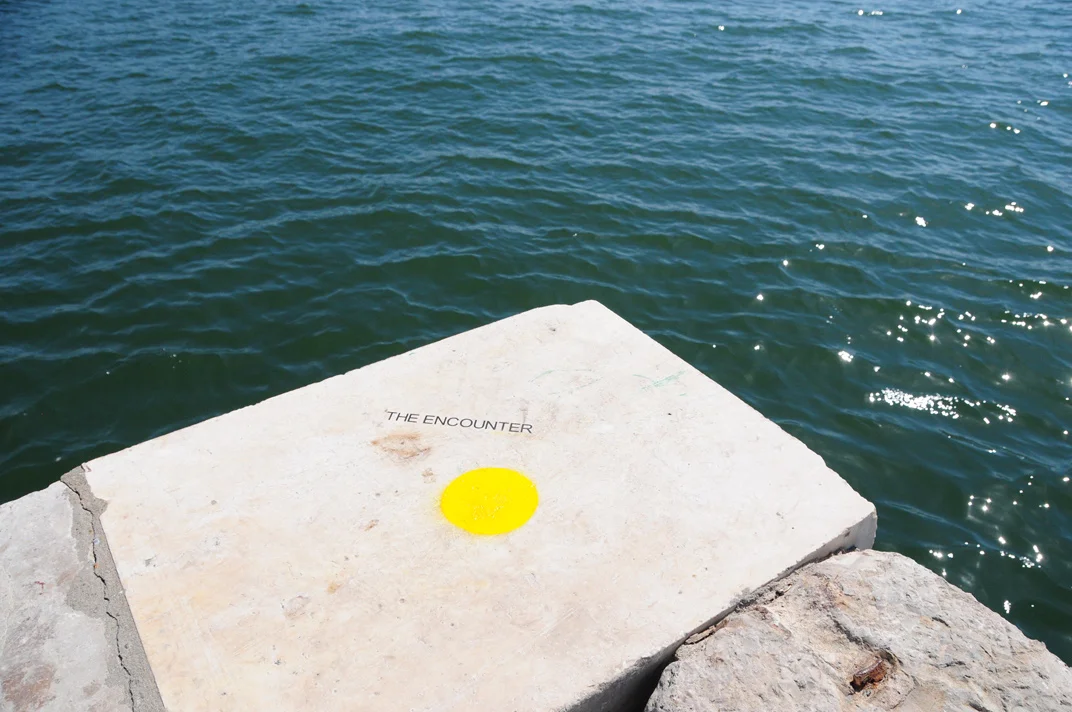 Turn right and walk down the length of the Terminal Fluvial Building. A boat has just arrived from X. People flood out from all the exits. A man in yellow jogs pas. When you move past the building, walk down the flight of stairs and to your right. There, at the end of the second pier, you will find your first destinatio. There you will stand and listen to the waves, lapping. There you will watch the boats arrive, and then leave again. There two men will be talking and drinking bee. Meanwhile, and elsewhere – up the river to your left at the Parque das Nações – another man will be standing and waiting for THE ENCOUNTER.